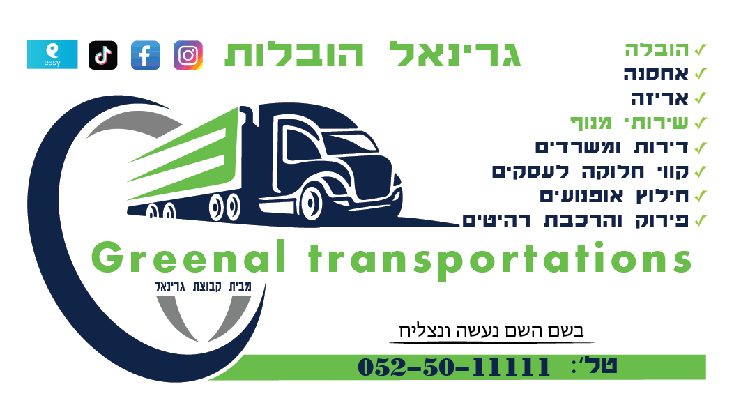 גרינאל הובלות מתמחה במתן שירותי הובלה ואריזה, אחסנה, פירוק והרכבת רהיטים, הובלות של פריטים בודדים, הובלות משרדים וכל סוגי הדירות והגדלים, ושירותי מנוף. אמינות, מקצועיות, ומחיר הגון, הינו נר לרגלנו.